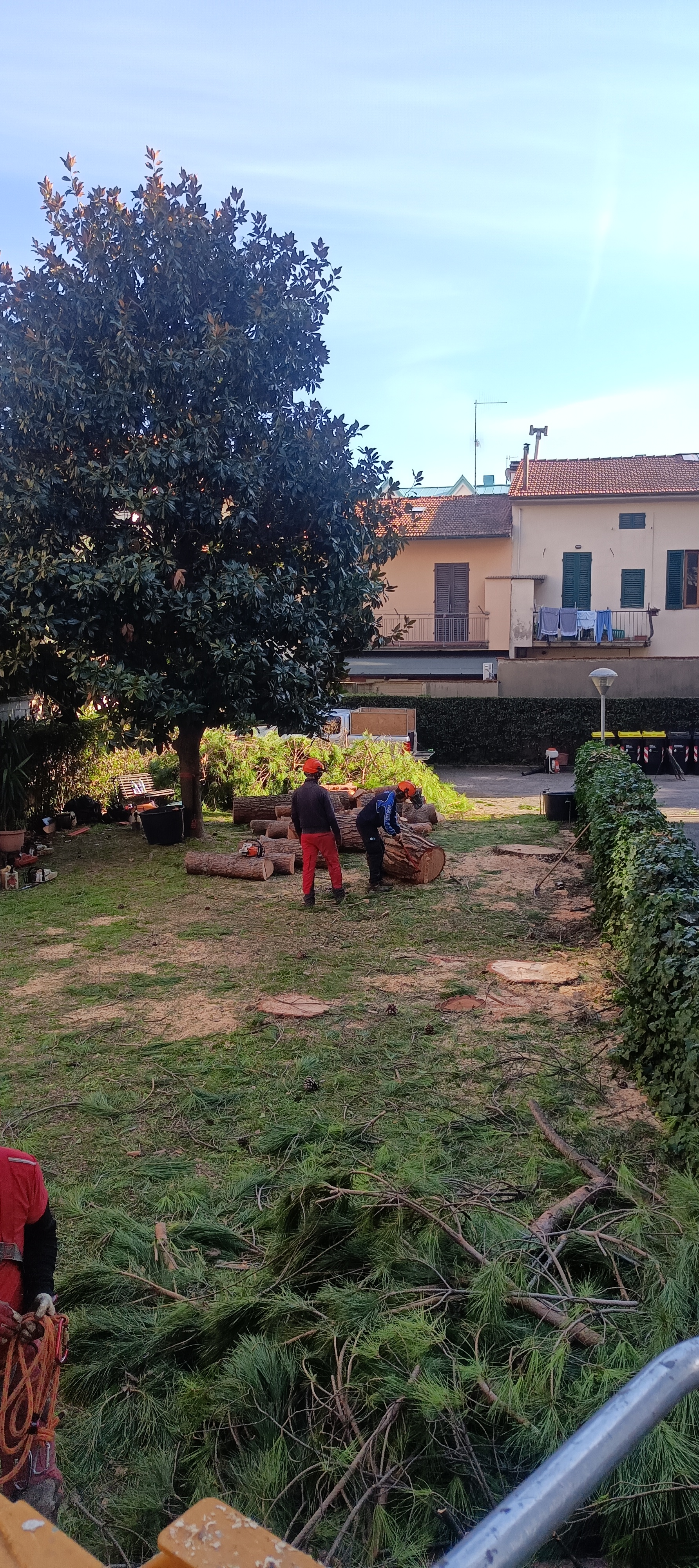 Gli alberi nei pressi di confini e di muri a retta , sono stati rimossi con ausilio di Piattaforma elevabile mobile.