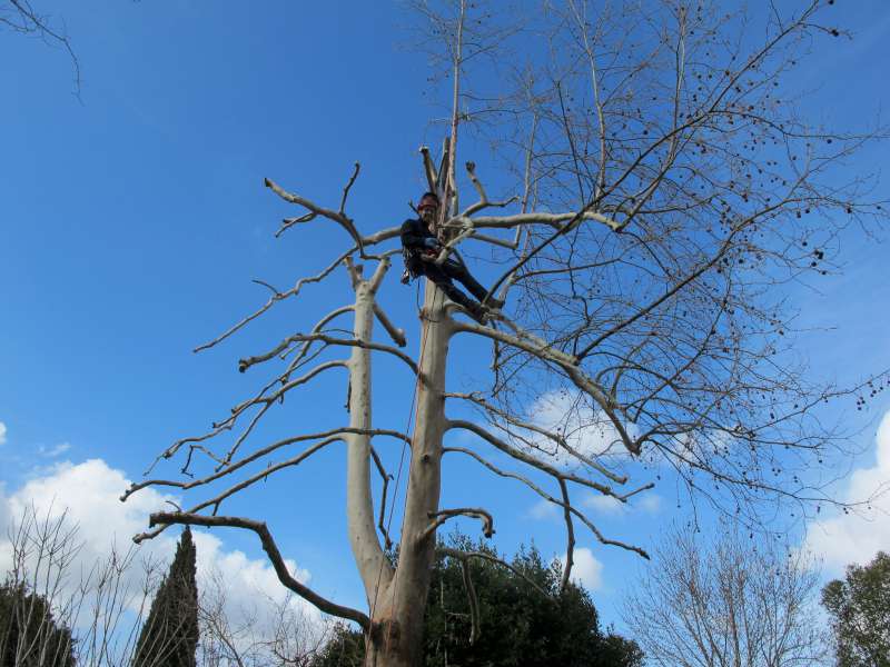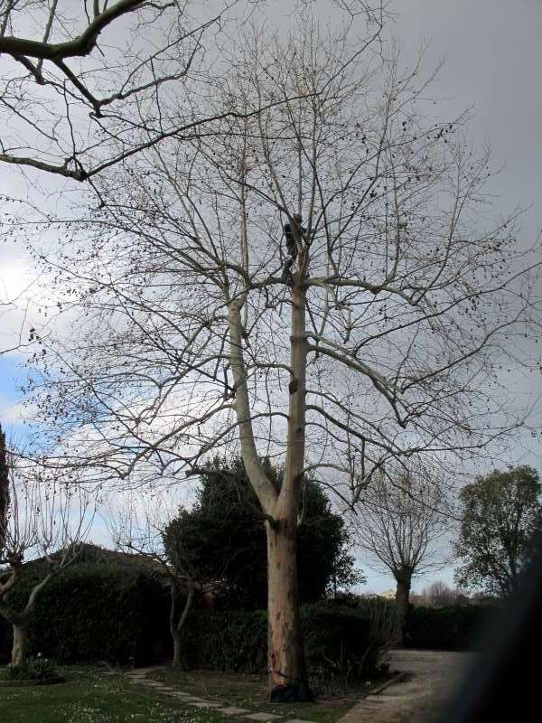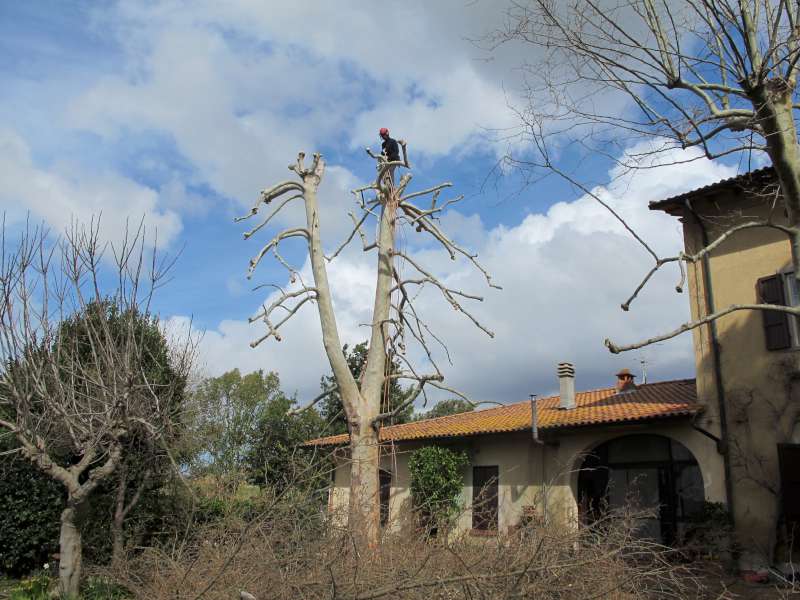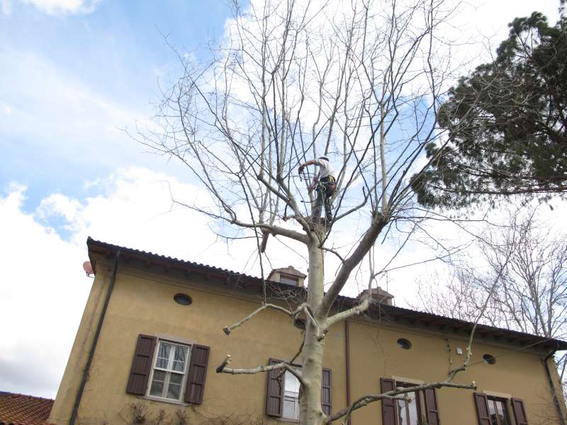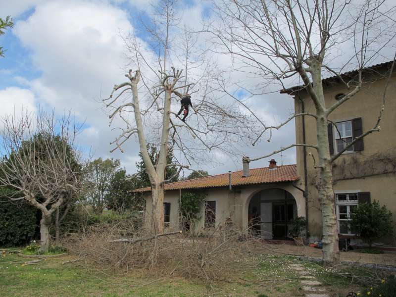 I proprietari ci hanno richiesto di effettuarre una potatura a Testa di salice o pollarding , su piante già "impostate" per questa tecnica.