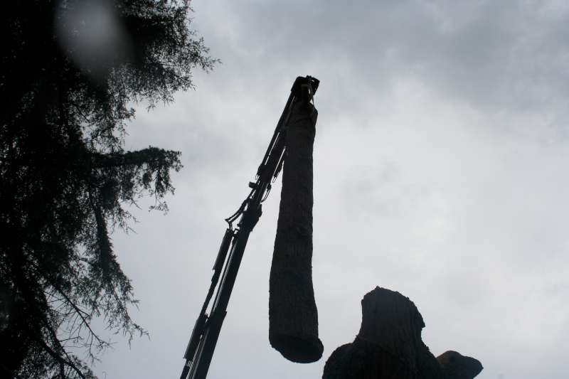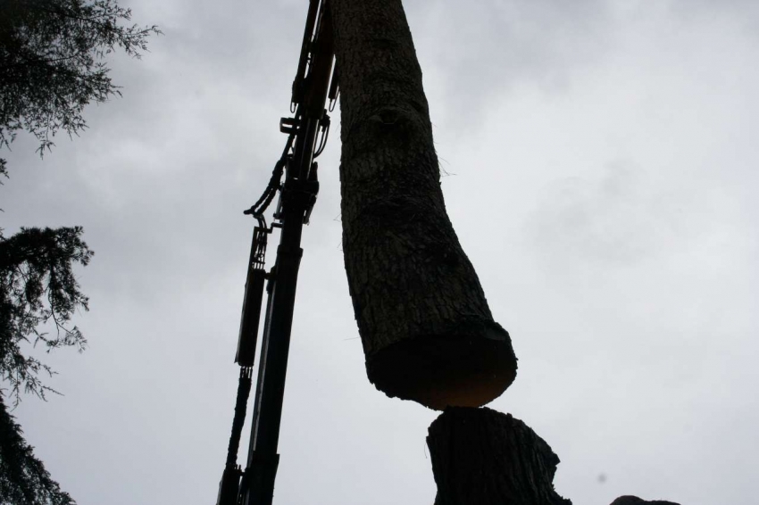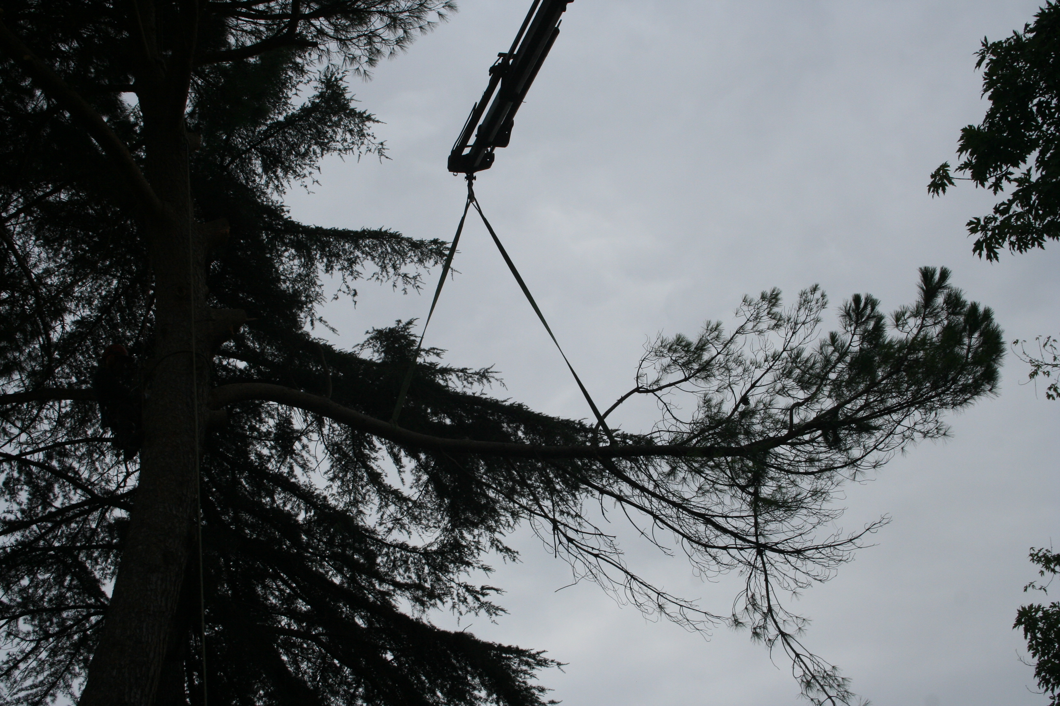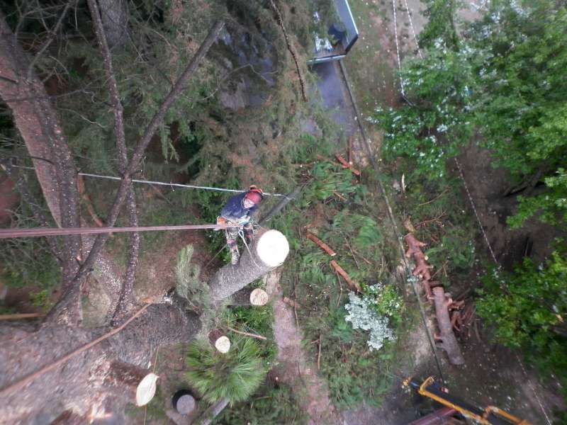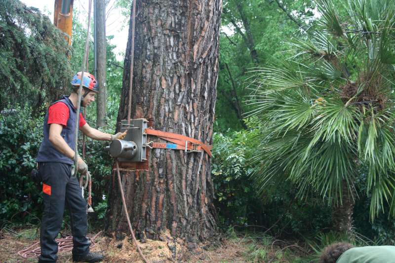 I motivi che ci hanno fatto optare per un abbattimento con ausilio di gru sono stati: lo spazio ristretto in cui era collocato l'albero,la vicinanza a manufatti(casa,ringhiere...) la presenza di fili del telefono, le dimensioni della pianta (oltre un metro di diametro alla base).
