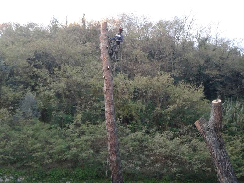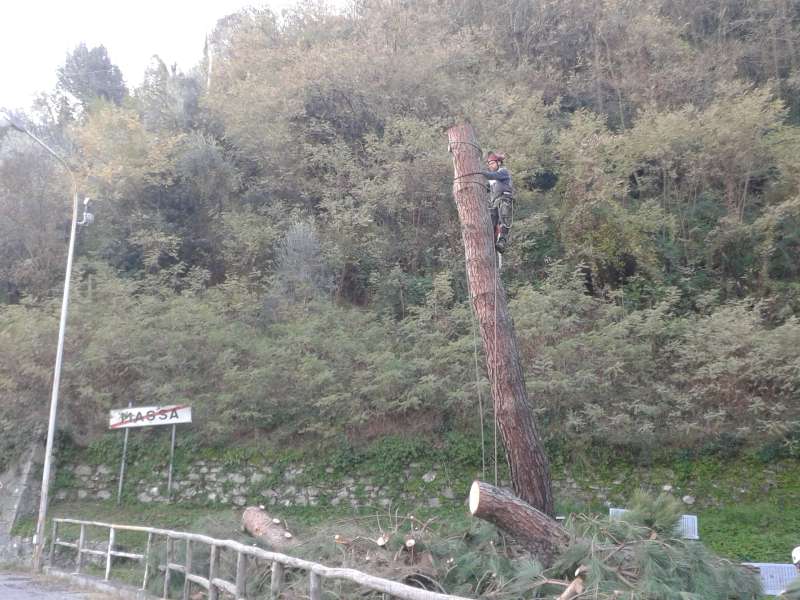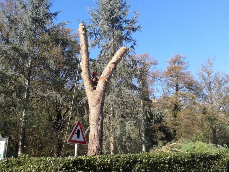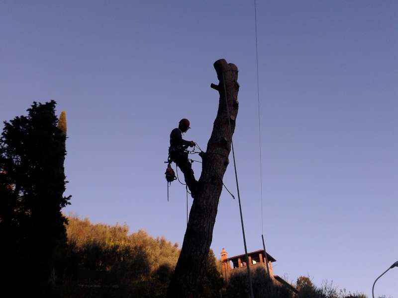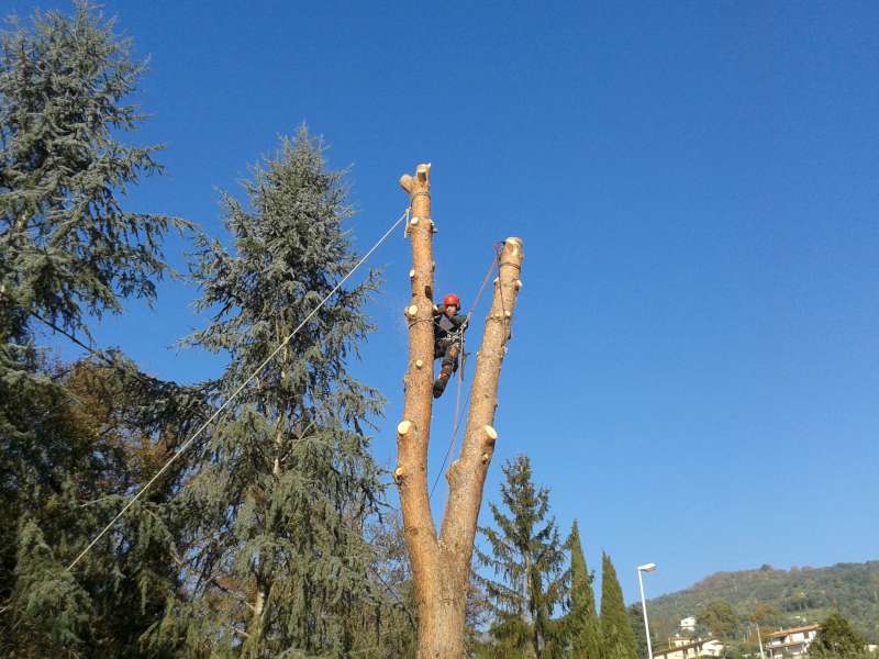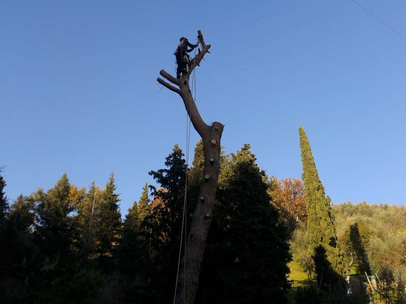 Gli abbattimenti sono avvenuti con la tecnica del treeclimbing, calando a terra porzioni di chioma e di tronco mediante l'ausilio di: funi, carrucole, frizioni ecc. ecc.