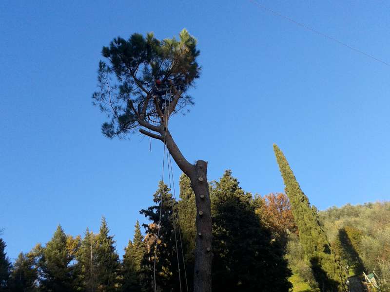 A seguito della caduta di alcuni Pinus Pinea (Pini Domestici) nel comune di Massa e Cozzile nella provincia di Pistoia siamo stati contattati per effettuare l'abbattimento di alcuni alberi.