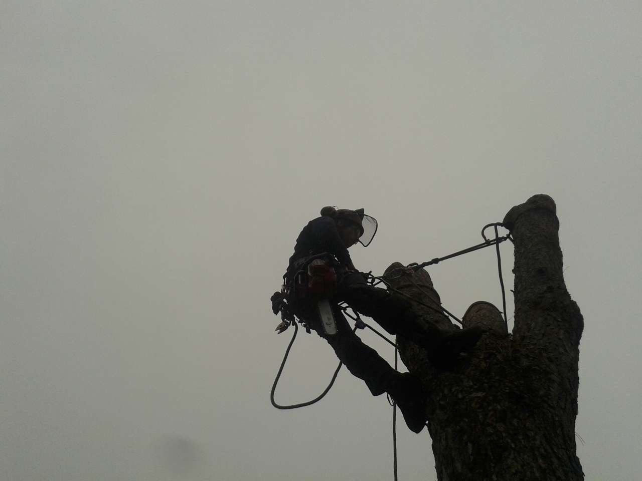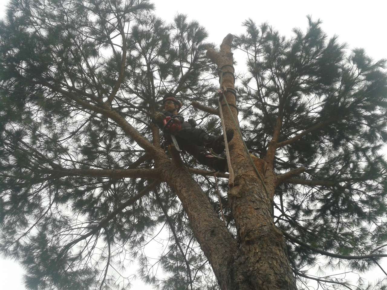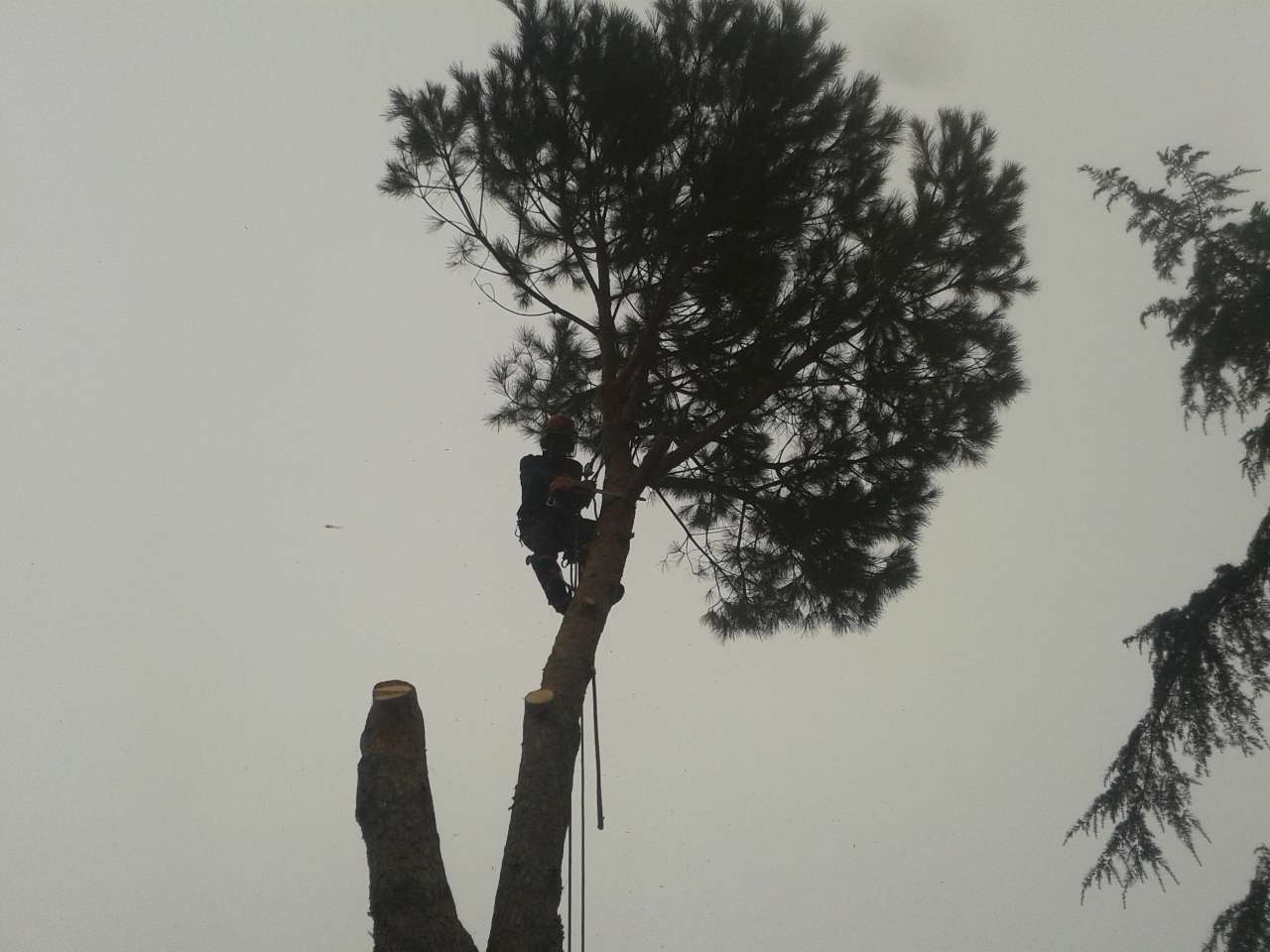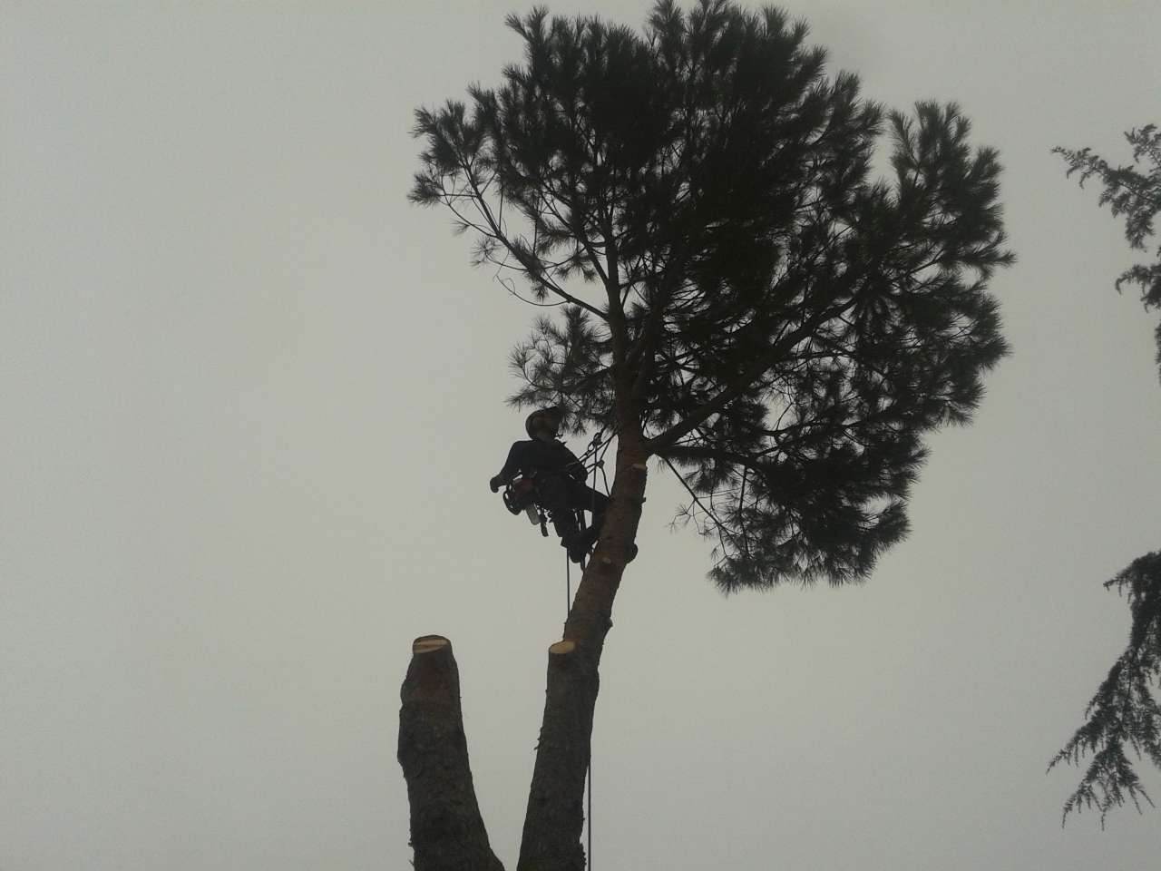 L'abbattimento è avvenuto "smontando" e calando a terra sia la chioma che il tronco con la tecnica del treeclimbing.